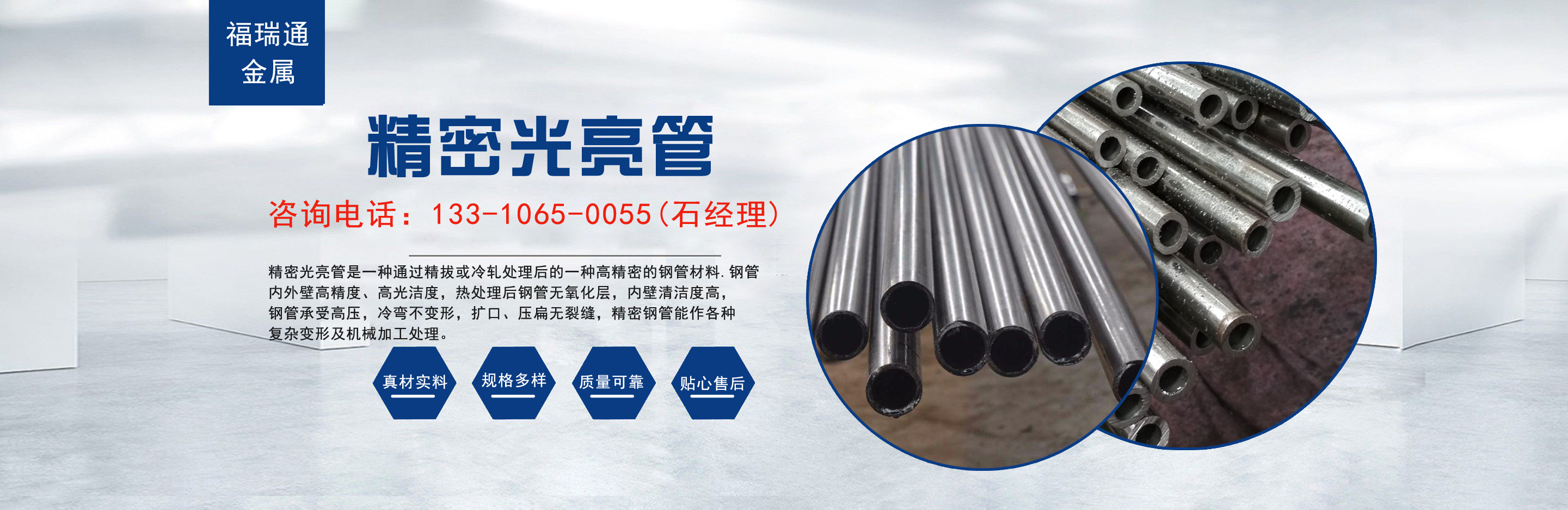 山東福瑞通金屬制品有限公司長期經營:精密光亮管,無縫方矩管,16mn無縫管,Q355BCDE無縫管,六角管,厚壁無縫管,消磁鍍鋅鋼管等系列產品,材質全,價格低,歡迎大家來電選購!  山東福瑞通金屬制品有限公司將嚴格企業管理,強化產品質量,一流的團隊為客戶做好一流的服務。本著信譽第一,薄利多銷的原則,以優質的服務,靈活的經營模式開拓市場;在廣大新老客戶的大力協助支持下,不斷發展壯大。誠信是企業的生命,您的需要是我們的立業之本。我們將竭誠為新老客戶提供過硬的產品和優質的服務,也竭誠歡迎廣大新老客戶來電、來函,來人洽談業務,指導工作?! 〗洜I理念:同樣的鋼管比質量、同樣的質量比價格、同樣的價格比服務、 同樣的服務比信譽。  企業精神:團結拼搏、艱苦奮斗、敬業奉獻、務實求新。...